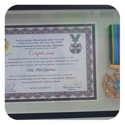 Medalha da Ordem do Mérito das Forças de Paz do Brasil – Oficial da Paz, pela atuação junto às Forças de Paz e dedicação à preservação da memória e valores militares e cívicos.