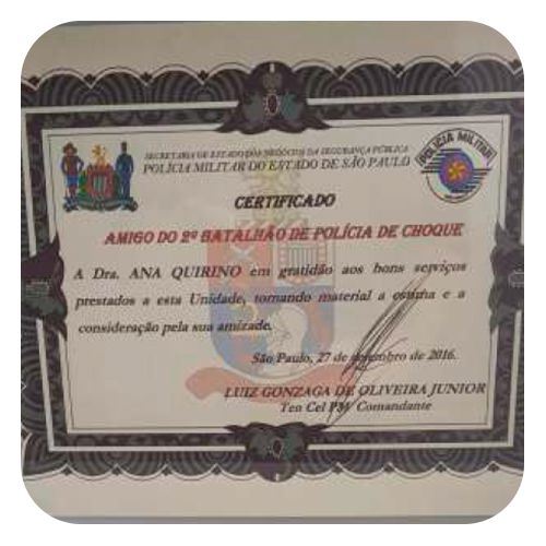 - Organização: Certificado Amigo do 2º Batalhão de Polícia de Choque